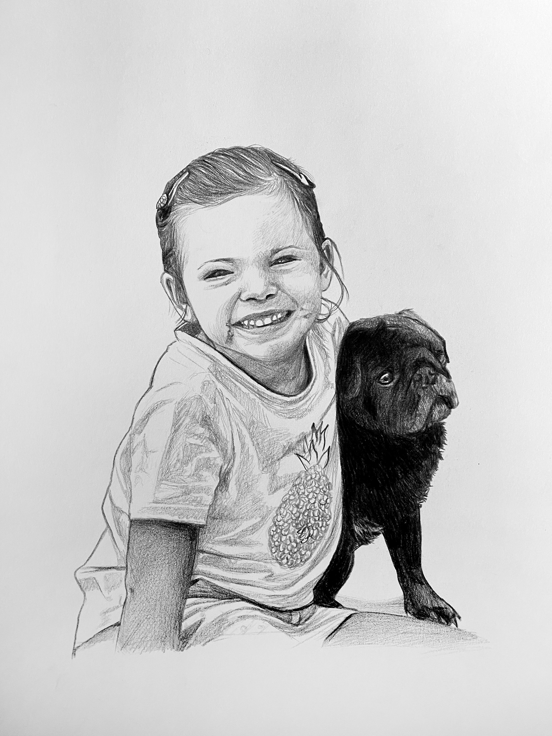 Portraits of people are a beautiful way to celebrate the individuals who mean the most to us. Whether capturing a loved one, a family member, or a special moment in time, each portrait is created with care to reflect their character and presence. Portraits can be commissioned to be drawn or painted.